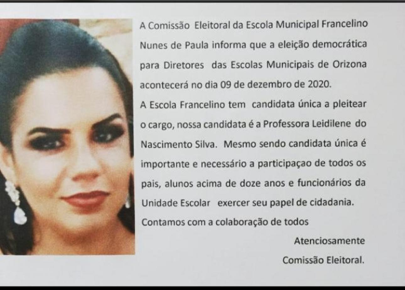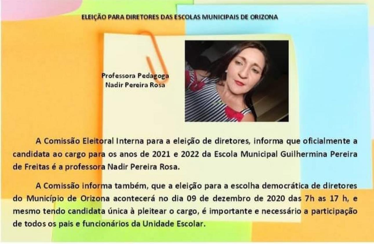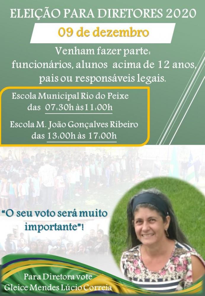 No dia 09/12/2020 serão realizadas as elições para a escolha dos diretores das unidades escolares, contamos com a presença dos pais e responsáveis, alunos (acima de 12 anos) e funcionários.